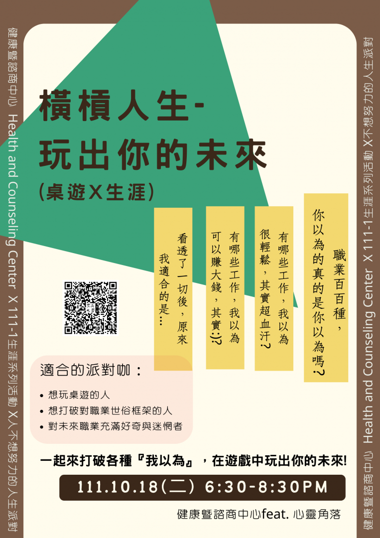 111.10.18(二)6:30-8:30 橫槓人生,玩出你的未來(桌遊x生涯)